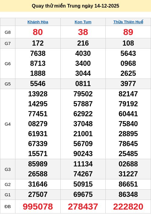 2. Thống kê lô tô miền Trung ngày 14/12/2025 chủ nhật