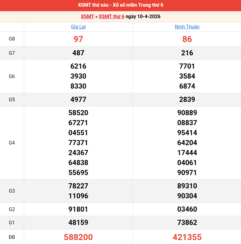 Bảng kết quả kỳ trước 10/04/2026