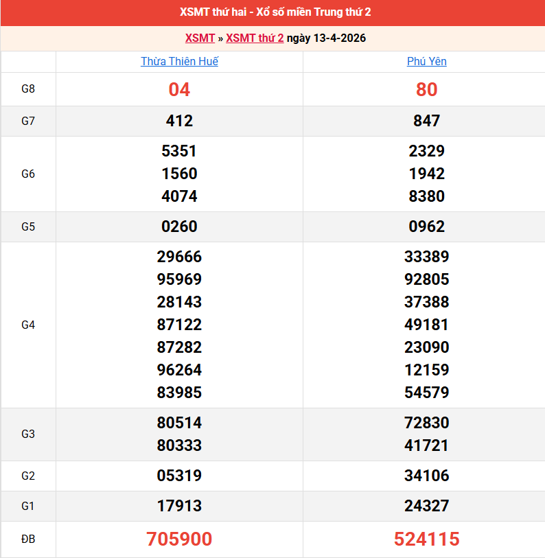 Tham khảo dự đoán Miền Trung ngày hôm nay ra con gì - Dự đoán 20/04/2026 chiều nay 2 đài siêu chuẩn xác từ đội ngũ giàu kinh nghiệm với các mục đầu đuôi đặc biệt, lô tô 2 số, xỉu chủ số đẹp, lô xiên chính xác nhất dưới đây: