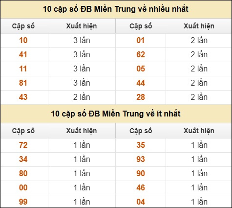 ⚡ 10 cặp số ĐB XSMT về nhiều nhất/ ít nhất tính dến ngày 21/12/2025: