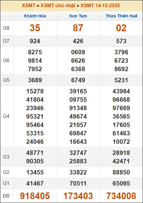Kết quả xổ số Miền Trung 14/12/2025 chủ nhật tuần trước