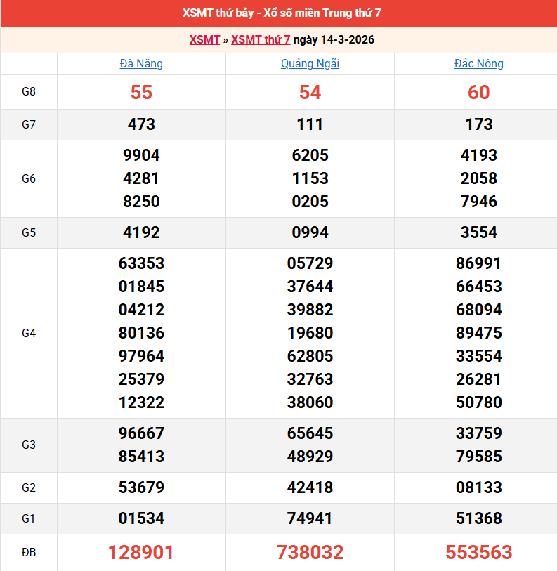 Bảng kết quả kỳ trước 14/03/2026