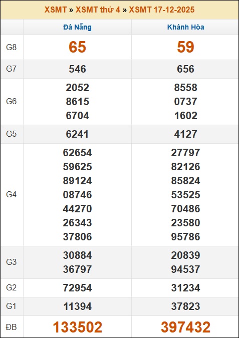 ⇒ Tham khảo những số liệu tổng hợp kết quả XSMT ngày 24 tháng 12 năm 2025 chi tiết từng tỉnh gồm có: loto về nhiều nhất, lô tô gan miền Trung, TK đầu - đuôi giải đặc biệt lâu chưa về nhất trong 10 ngày, 30 ngày gần đây để nhận định xổ số miền Trung 24/12 hôm nay.
