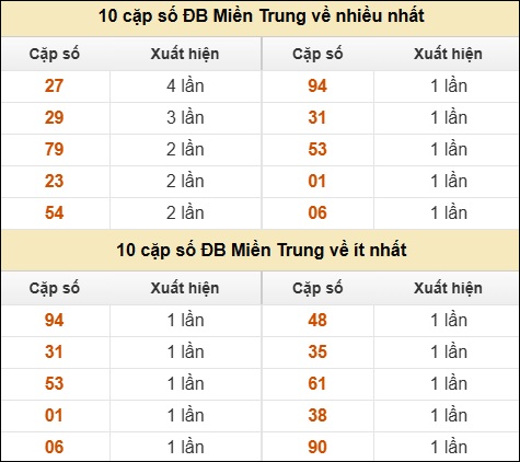 ⚡ 10 cặp số ĐB XSMT về nhiều nhất/ ít nhất tính dến ngày 29/12/2025: