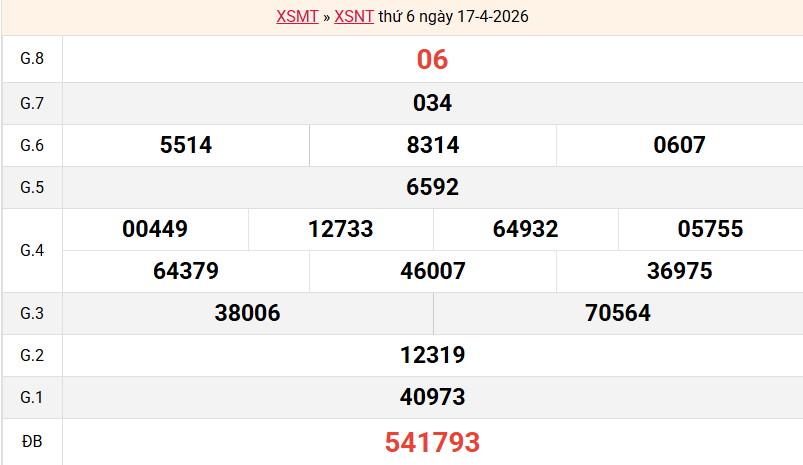 Mời các bạn xem lại bảng kết quả kỳ trước với giải đặc biệt, giải tám, lô tô 2 số để có thể đưa ra nhận định dự đoán NT ngày 24/04/2026 chuẩn xác nhất.