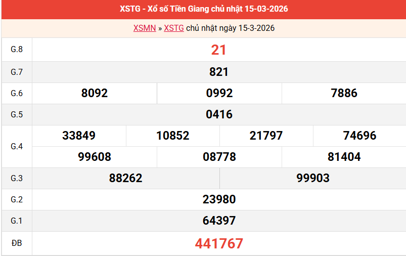 Bảng kết quả Tiền Giang ngày 15/03/2026 tuần trước