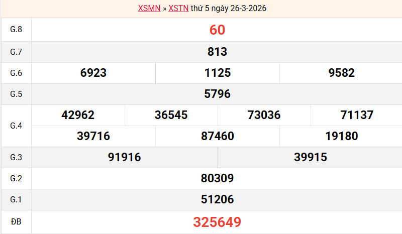 Bảng kết quả Tây Ninh ngày 26/03/2026 tuần trước