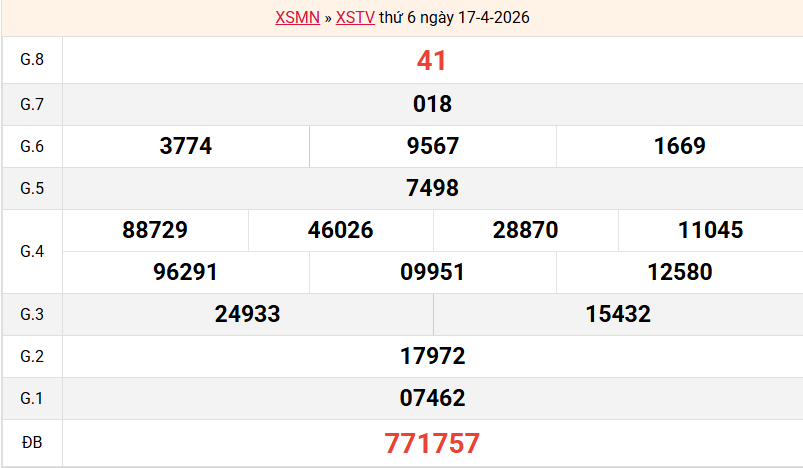 Bảng kết quả Trà Vinh ngày 17/04/2026 tuần trước