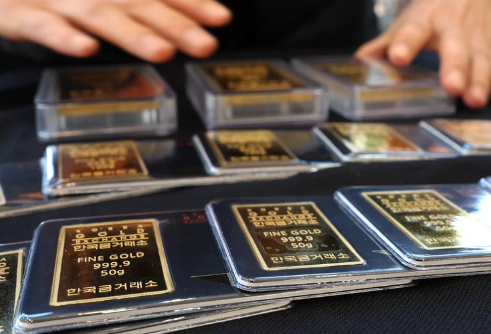 Vàng miếng được bày bán tại sàn giao dịch ở Seoul, Hàn Quốc. Ảnh: Yonhap/TTXVN