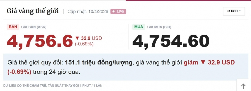 Giá vàng thế giới hôm nay 10/4/2026
