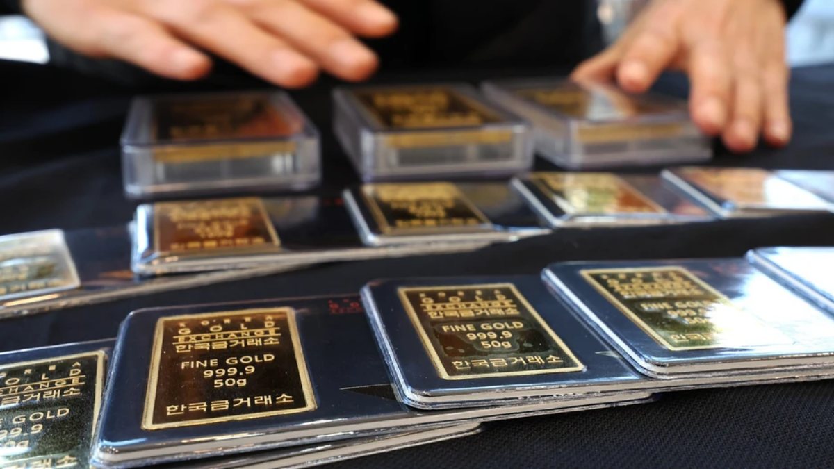 Vàng miếng được bày bán tại sàn giao dịch ở Seoul, Hàn Quốc. Ảnh: Yonhap/TTXVN