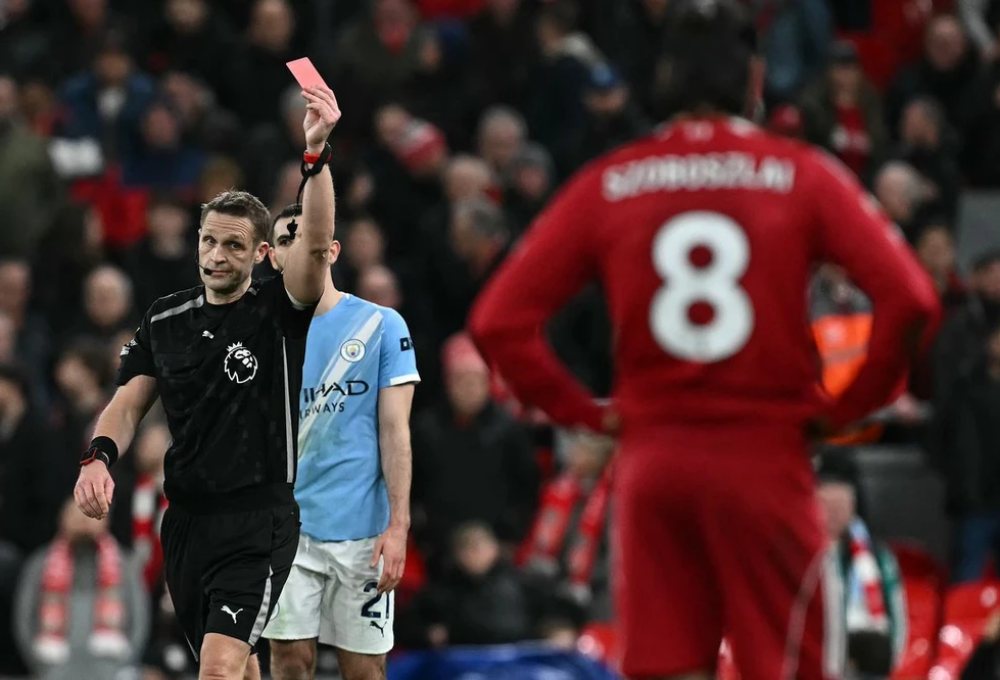 Theo tờ The Sun, Man City được hưởng quyền lợi theo luật lợi thế, nhưng do họ phạm lỗi trong chính tình huống lợi thế đó, trận đấu bị đưa trở lại lỗi ban đầu và Szoboszlai phải nhận thẻ đỏ trong khung cảnh hỗn loạn.