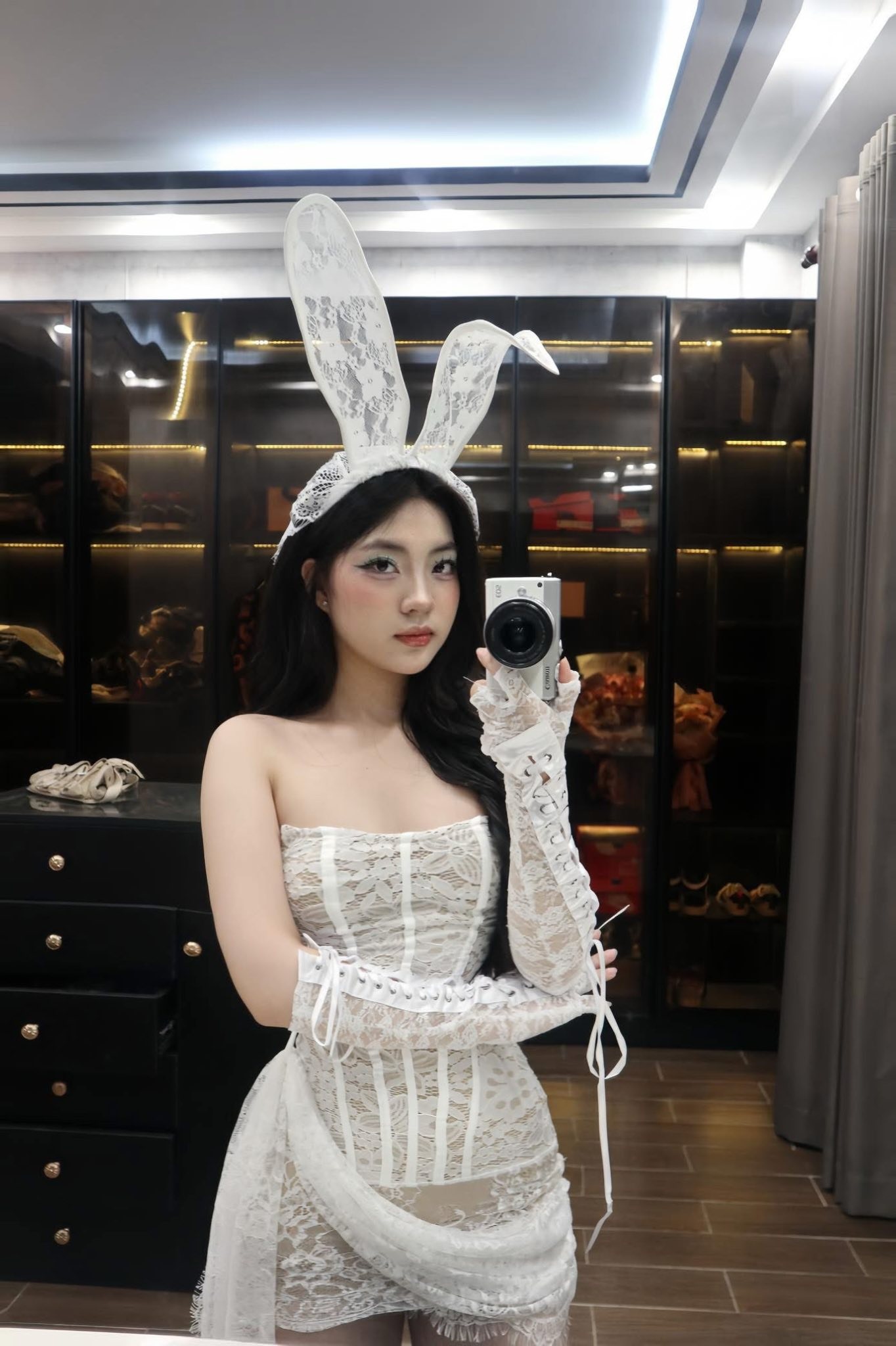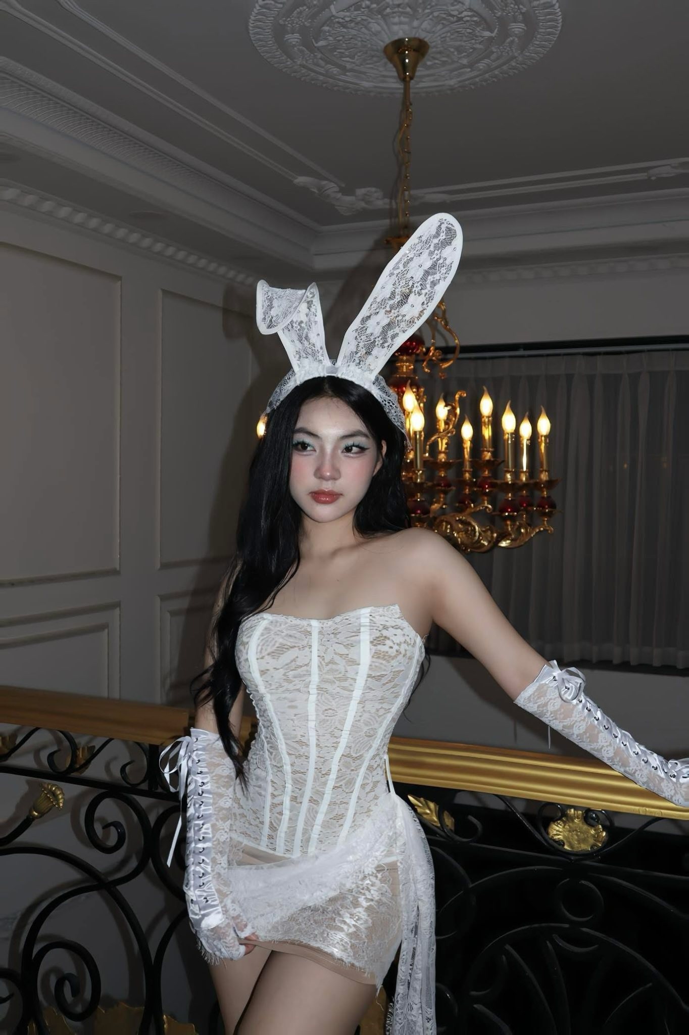 Trong đó, cái tên Thư Lê đang là tâm điểm chú ý khi tung ra bộ ảnh hóa thân thành “cô thỏ” đầy quyến rũ, khiến CĐM không thể rời mắt. Không chọn phong cách kinh dị hay rùng rợn như thường thấy, Thư Lê xuất hiện trong bộ outfit ren trắng tinh khôi nhưng vẫn tôn lên nét gợi cảm. Từ chiếc váy ôm sát với những đường cắt tinh tế, đến đôi tai thỏ bằng ren trắng mềm mại, tất cả hòa quyện tạo nên hình ảnh vừa ngọt ngào, vừa có chút bí ẩn.