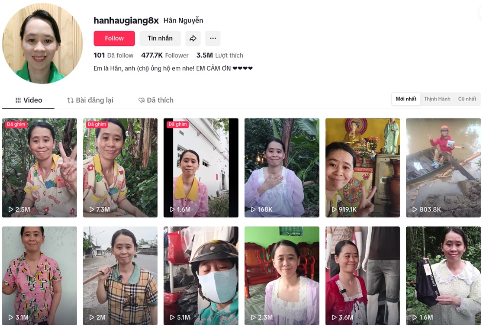 Không giống như nhiều kênh TikTok đầu tư mạnh vào hình ảnh, kịch bản hay các chiêu trò, Hân Nguyễn lại thu hút người xem nhờ sự chân thành và tự nhiên.