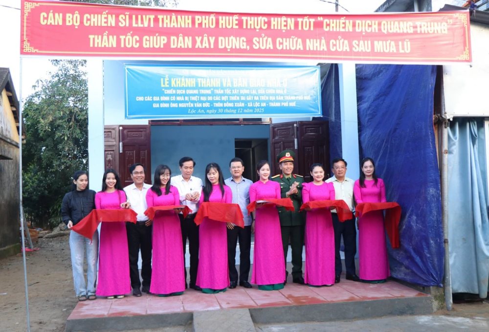 Đến nay, thành phố Huế đã hoàn thành sửa chữa 40/40 nhà; xây mới 2 nhà tại xã Lộc An. Ba ngôi nhà được xây mới khác tại xã Khe Tre cũng sắp hoàn thành, đạt trên 85%. Các lực lượng đang tập trung tổng lực triển khai và phấn đấu hoàn thành trước ngày 16/1/2026, đảm bảo tiến độ được Thủ tướng Chính phủ giao.