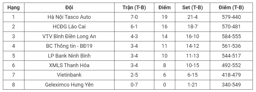Bảng xếp hạng bóng chuyền VĐQG 2026 - Nội dung nữ
