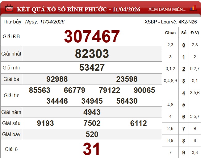 - XSBP 11/4, kết quả xổ số Bình Phước ngày 11/4/2026