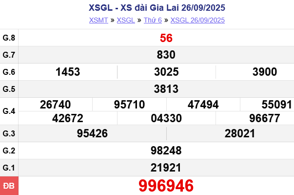 - XSGL 26/9, Kết quả xổ số Gia Lai ngày 26/9/2025