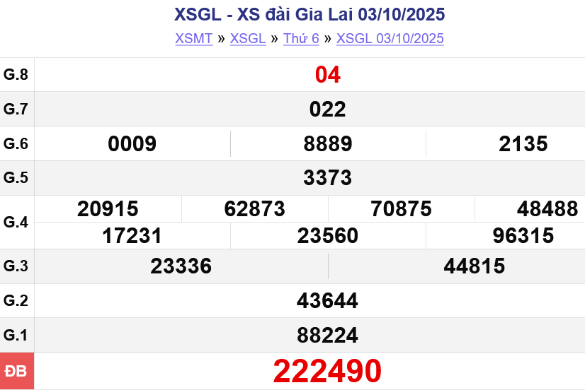 XSGL 3/10, Kết quả xổ số hôm nay ngày 3/10, XSGL Thứ Sáu, Trực tiếp KQXSGL ngày 3/10, Kết quả xổ số Gia Lai hôm nay ngày 3/10/2025, Kết quả xổ số Gia Lai Thứ Sáu ngày 3/10/2025.