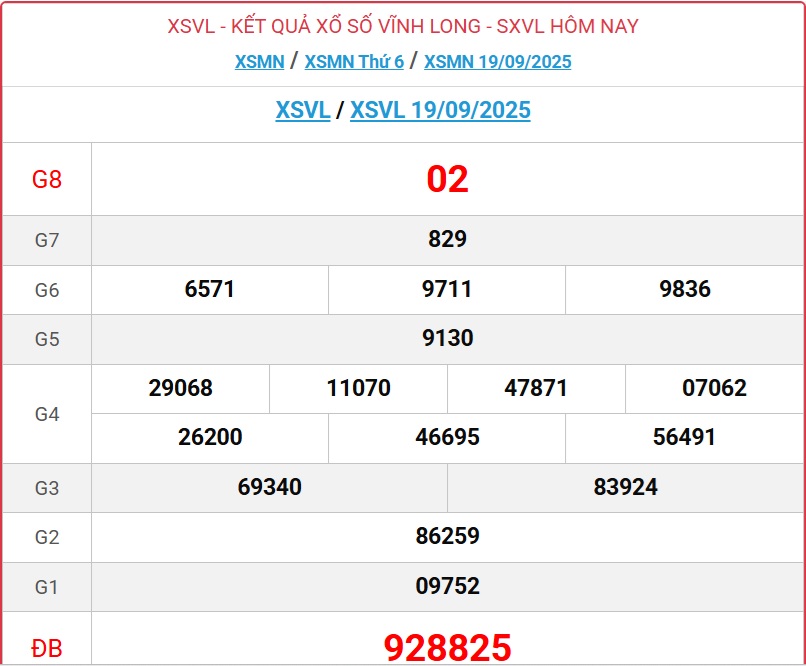 XSVL 19/9, Kết quả xổ số hôm nay ngày 19/9, XSVL thứ Sáu, Trực tiếp KQXSVL ngày 19/9, Kết quả xổ số Vĩnh Long hôm nay ngày 19/9/2025.
