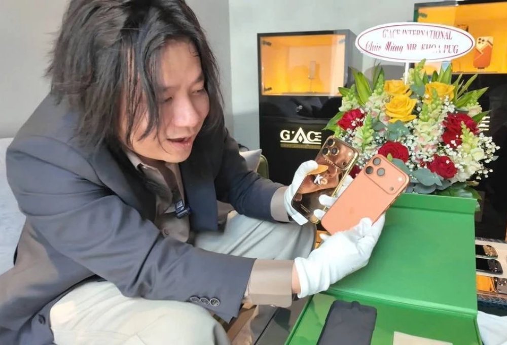 Tháng 10/2025, Khoa Pug đăng tải vlog với tiêu đề "Chi 300 triệu đồng đập hộp iPhone 17 đắt nhất thế giới". Trong video, anh giới thiệu đây là "chiếc iPhone 17 Pro Max duy nhất trên thế giới, giá bằng con ôtô" và đưa ra giấy chứng nhận "độc bản". Phần hộp đựng iPhone được dát vàng 24K toàn bộ, được chế tác cá nhân hóa với mặt lưng khắc chữ "KP" - viết tắt tên Khoa Pug. Riêng chữ K được phủ bạch kim và đính kim cương.