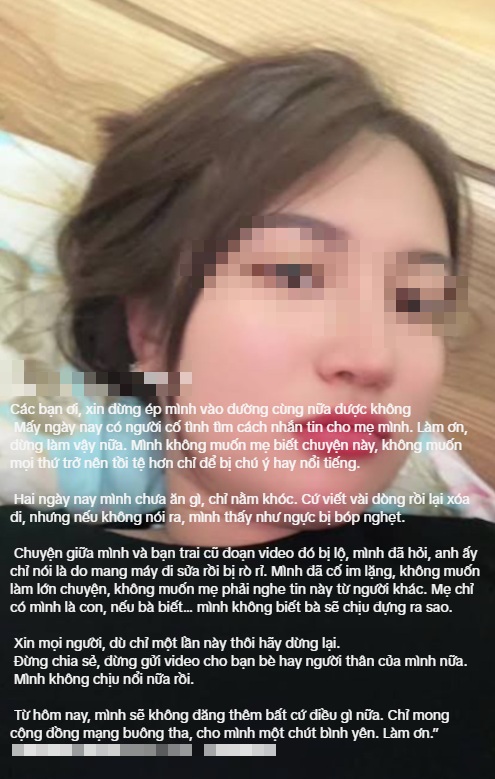 Chỉ vài dòng ngắn ngủi ấy đủ khiến nhiều người đọc cảm thấy nghẹn lòng. Có thể thấy, cô gái trẻ đang phải đối mặt với một cơn ác mộng khủng khiếp, sự riêng tư bị xâm phạm, danh dự bị chà đạp và bản thân bị đẩy đến giới hạn chịu đựng.