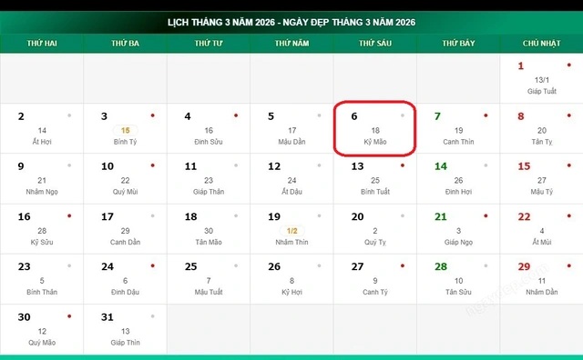 Lịch âm 6/3 – Âm lịch hôm nay thứ Sáu ngày 6/3/2026 chính xác nhất, xem lịch vạn niên ngày 6/3/2026