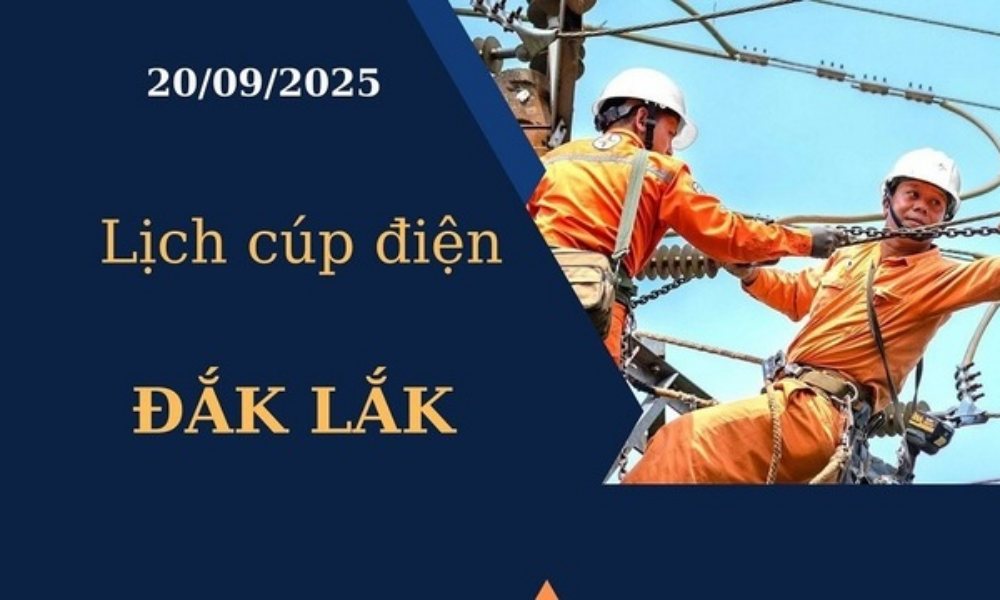 Cập nhật Thông tin mới nhất về lịch cúp điện các khu vực tại Đắk Lắk ngày 20/09/2025 được cập nhật từ cổng thông tin Điện lực miền Trung.