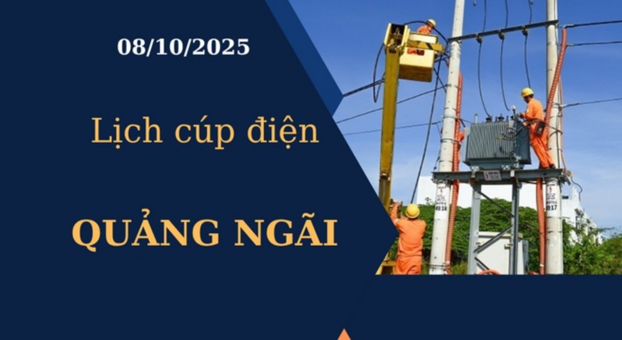 Cập nhật Thông tin mới nhất về lịch cúp điện các khu vực tại Quảng Ngãi ngày 08/10/2025 từ cổng thông tin Điện lực miền Trung.