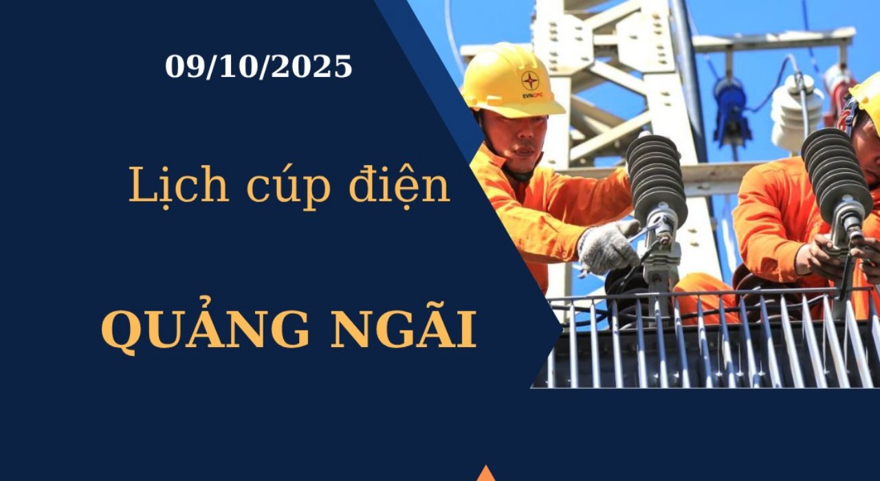 Cập nhật thông tin mới nhất về lịch cúp điện các khu vực tại Quảng Ngãi ngày 09/10/2025 từ cổng thông tin Điện lực miền Trung.
