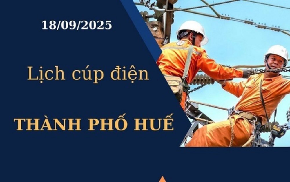 Lịch cúp điện hôm nay tại Thành phố Huế ngày 18/09/2025