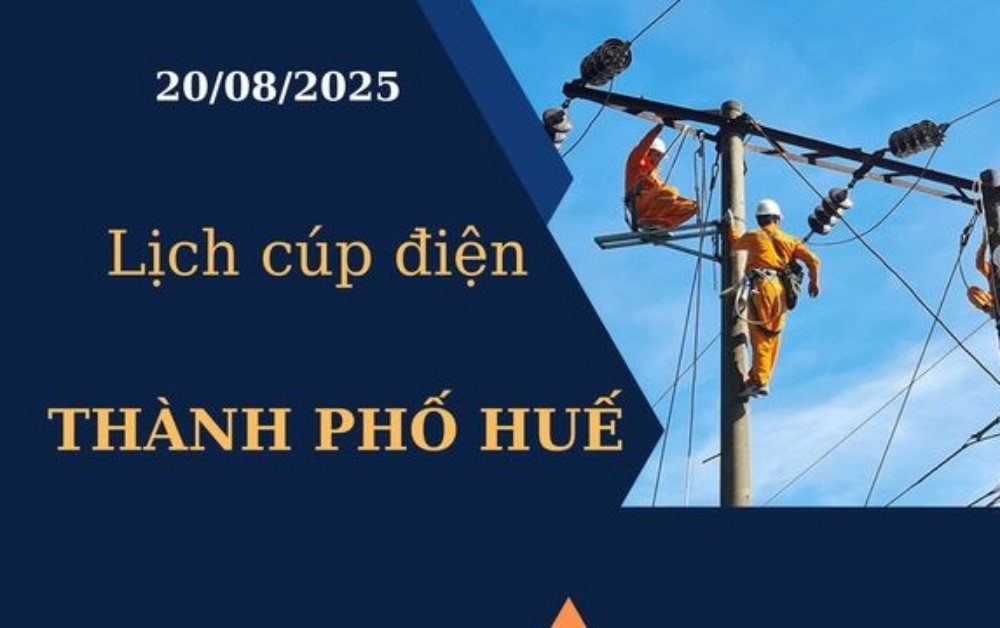 Cập nhật Thông tin mới nhất về lịch cúp điện các khu vực tại Thành phố Huế ngày 20/08/2025 được cập nhật từ cổng thông tin Điện lực miền Trung.