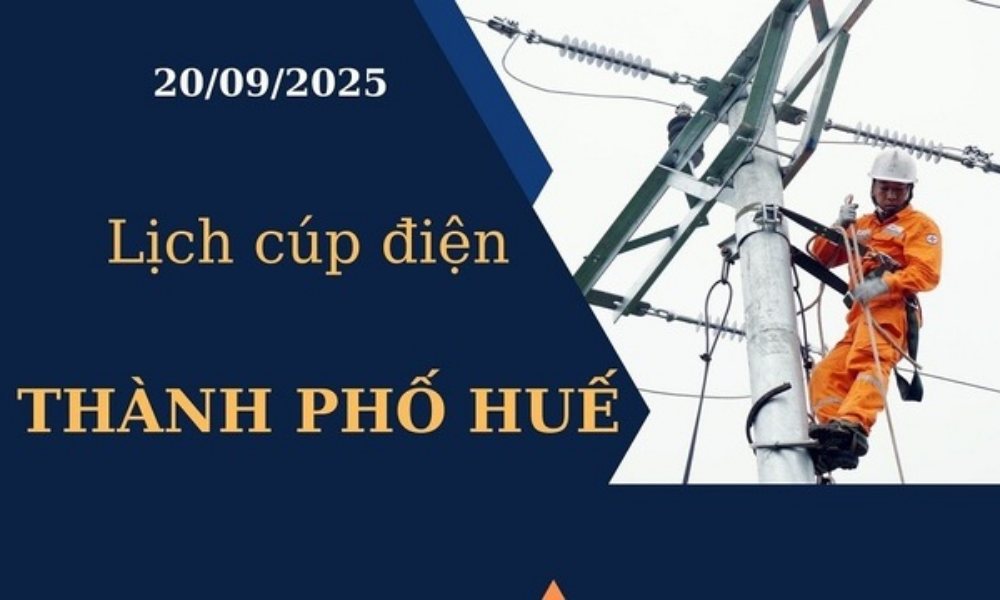 Cập nhật Thông tin mới nhất về lịch cúp điện các khu vực tại Thành phố Huế ngày 20/09/2025 được cập nhật từ cổng thông tin Điện lực miền Trung.