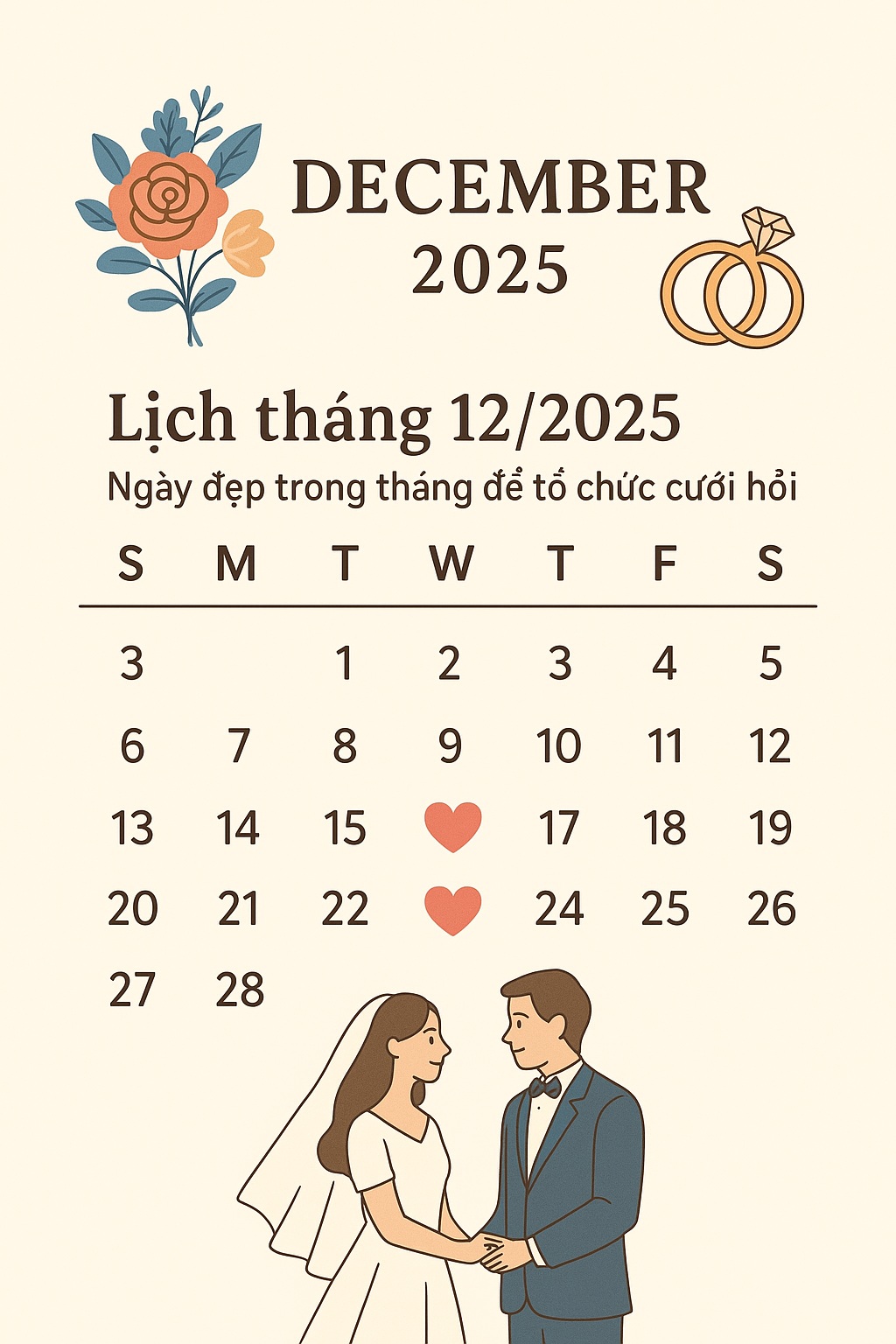 Lịch tháng 12/2025: Ngày đẹp trong tháng để tổ chức cưới hỏi