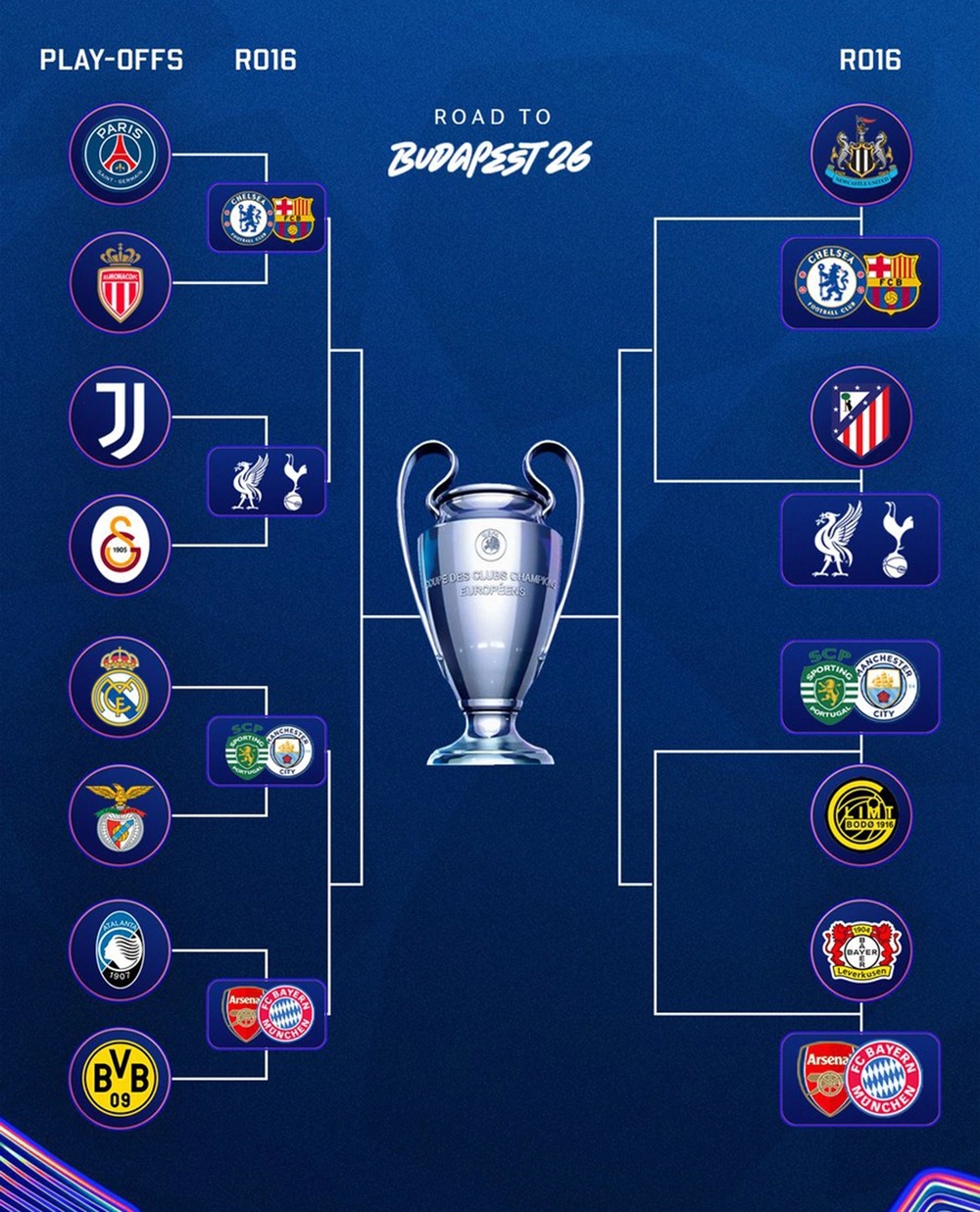 Lịch thi đấu vòng 1/8 Cúp C1 châu Âu - Cập nhật lịch thi đấu, thể thức bốc thăm vòng 1/8 UEFA Champion League 2025-26.