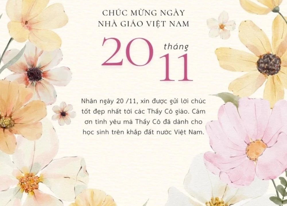 - Em xin gửi lời chúc tốt đẹp nhất tới thầy, người luôn tận tụy và hết lòng vì học sinh. Chúc mừng thầy Ngày Nhà giáo Việt Nam 20/11!