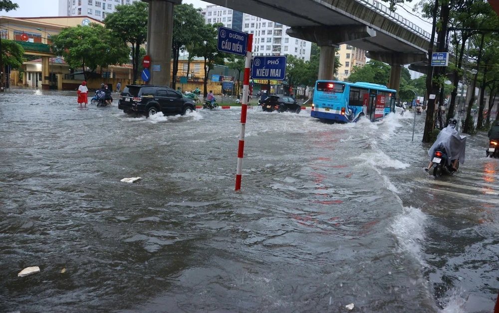 Công ty TNHH MTV Thoát nước Hà Nội cập nhật danh sách các tuyến đường ngập trong sáng nay: Đàm Quang Trung qua Aeon mall, Long Biên; Linh Đàm, Keangnam, Nguyễn Chí Thanh, Liễu Giai, Văn Cao, dọc đường Láng Hạ và Thái Hà; đoạn qua bến xe Mỹ Đình; Đại lộ Thăng Long rẽ ra Khuất Duy Tiến, Nguyễn Xiển; phố Phan Văn Trường, Cầu Giấy; Bến xe Yên Nghĩa; Ngã tư Xuân Thuỷ - Hồ Tùng Mậu; Nguyễn Cảnh Dị - Định Công; đường Nguyễn Khánh Toàn trước công viên Nghĩa Đô; nút giao thông Tố Hữu- Vũ Trọng Khánh, Quang Trung- Lê Trọng Tấn; nút Phạm Tu- Cầu Bươu…