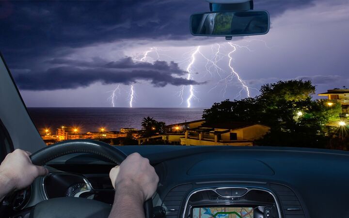 Do đó, khi trời nổi sấm chớp, bạn nên tránh ra khỏi xe, không cầm ô, không đứng cạnh cửa sổ hoặc gần cột điện, mà hãy ngồi yên trong xe với cửa đóng kín. Sau khi giông qua, kiểm tra xe cẩn thận trước khi tiếp tục di chuyển.