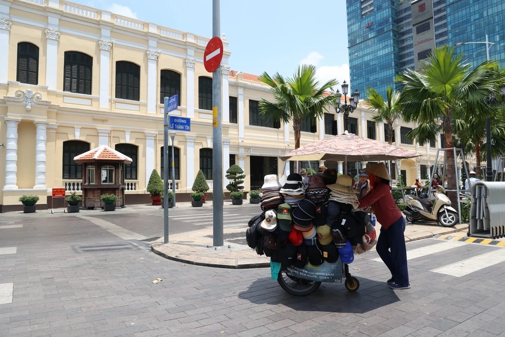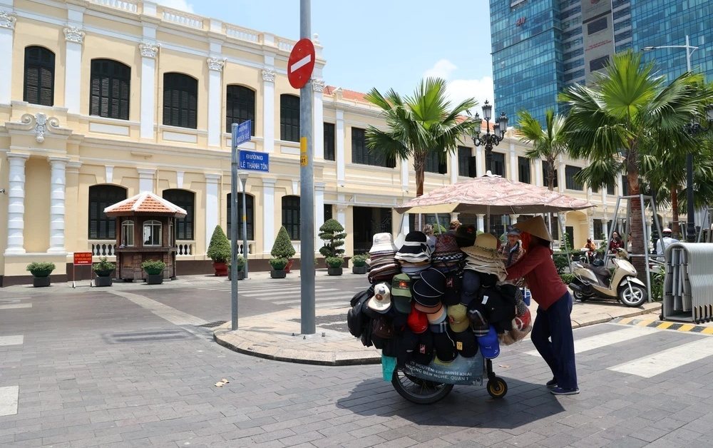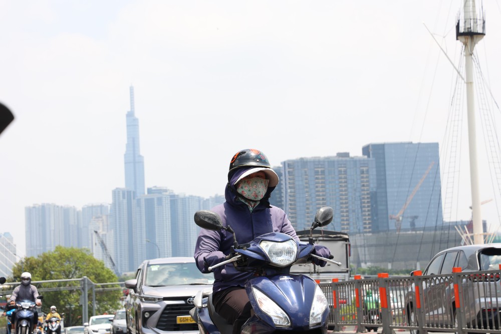 Ghi nhận của phóng viên vào trưa 9/4 tại các phường khu vực trung tâm như: Sài Gòn, Hòa Hưng, Khánh Hội, Bình Thạnh…, mặt đường nhựa tỏa hơi nóng hầm hập. Nhiệt lượng tích tụ từ nhựa đường, phương tiện giao thông đông đúc, các khối bê tông từ cao ốc và công trình xây dựng đang thi công khiến không khí như bị "nung nóng" thêm nhiều độ. Dù đứng dưới bóng râm hiếm hoi, người đi đường vẫn cảm nhận rõ luồng khí nóng hắt lên từ mặt đất.