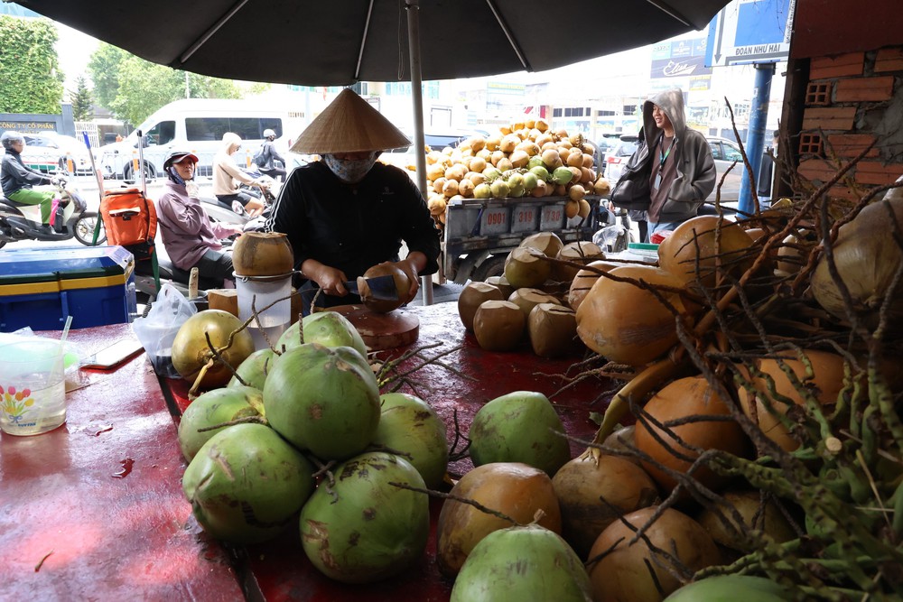 Chị Nguyễn Thị Mận, bán dừa tươi trên đường Cách Mạng Tháng Tám (phường Hòa Hưng) từ 9 giờ sáng đã luôn trong tình trạng đông khách. Chị Mận nói: "Tôi chặt dừa, rót nước, giao hàng… liên tục cho khách. Nắng quá nên khách uống nhiều, có ngày bán gần 1.000 trái dừa, làm không kịp nghỉ".