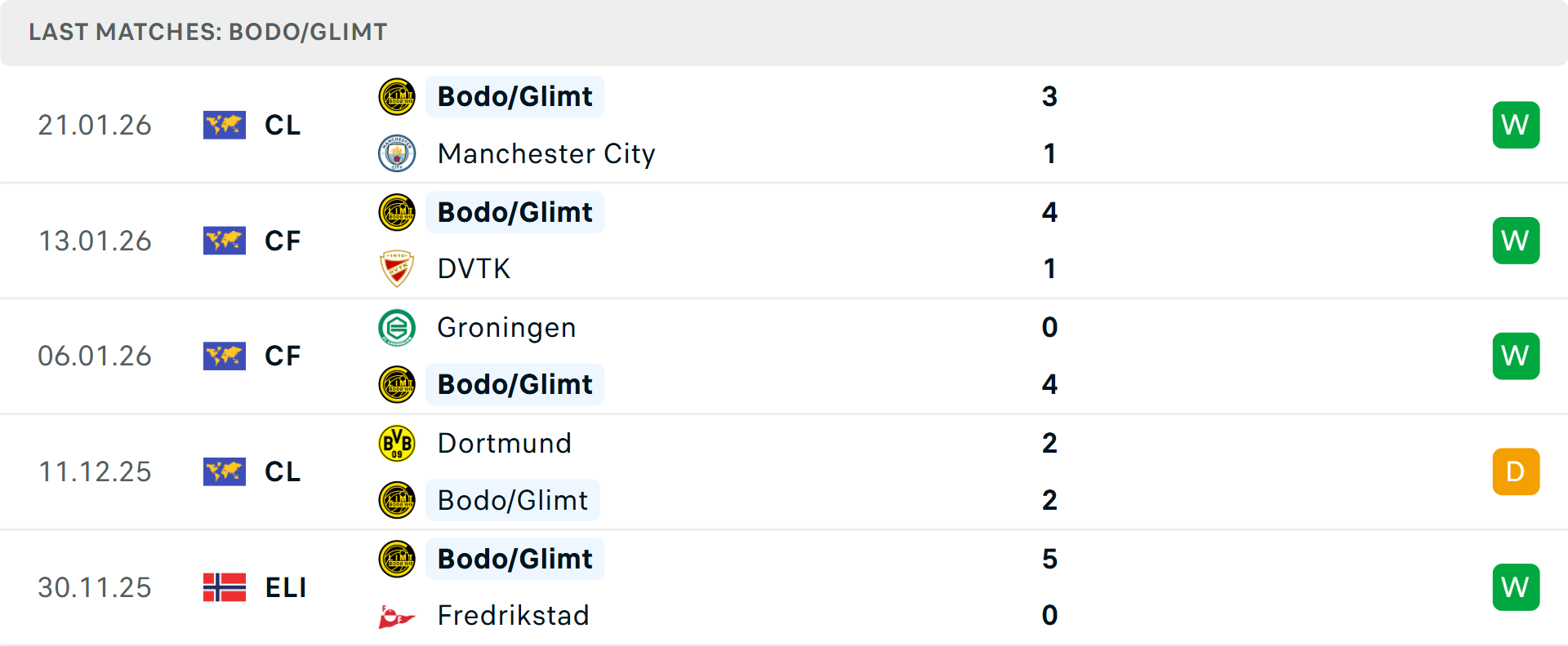 Bodo/Glimt lại gây sốc khi đánh bại Manchester City 3-1 ở lượt trận trước, qua đó nuôi hy vọng lọt vào top 24. Tuy nhiên, họ vẫn cần nhiều kết quả thuận lợi khác để có vé đi tiếp.