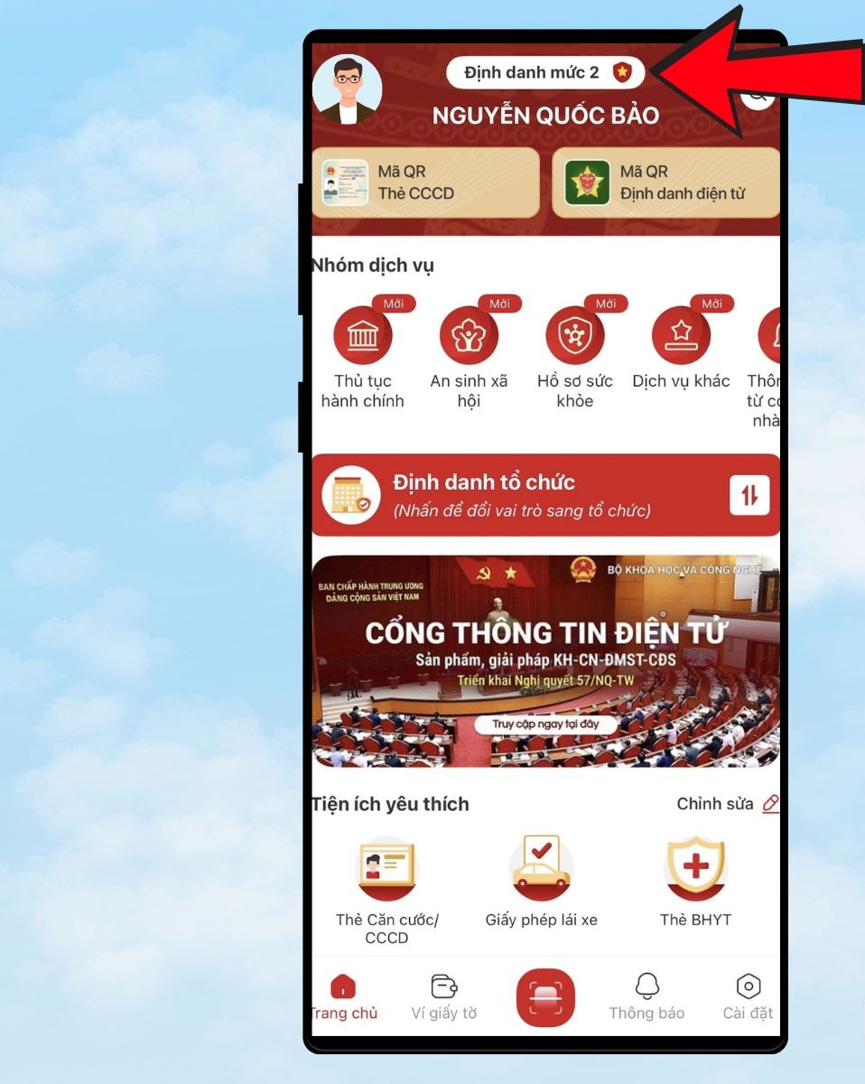 - Nếu đang sử dụng tài khoản mức độ 1 thì cần nâng cấp lên mức độ 2. Việc nâng cấp có thể thực hiện trực tiếp tại Công an xã, phường hoặc tại các điểm đăng ký VNeID.