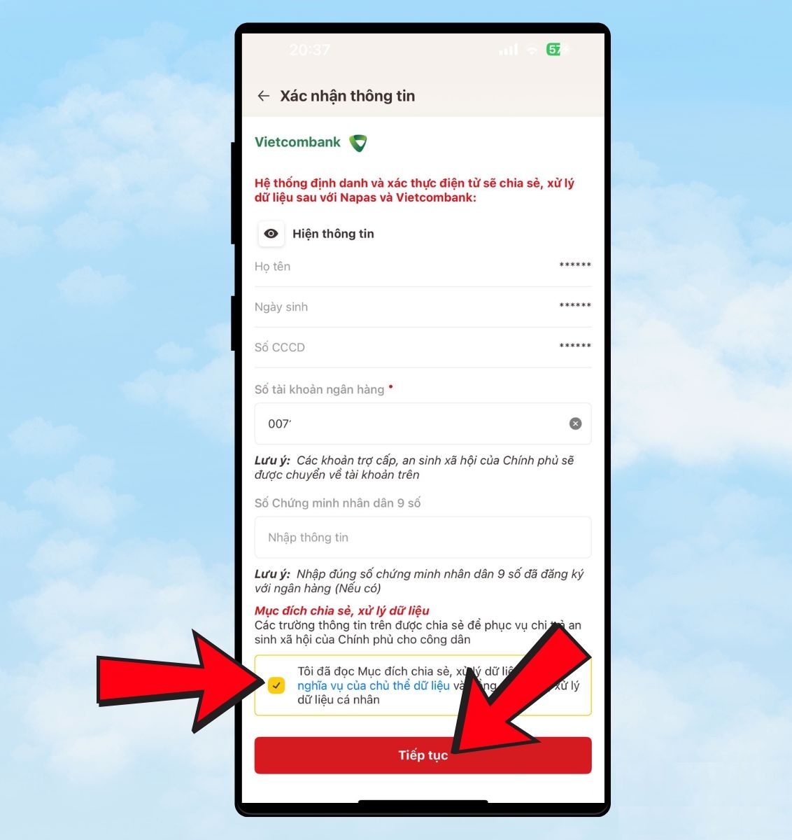 Bước 4: Xác thực tài khoản hưởng trợ cấp