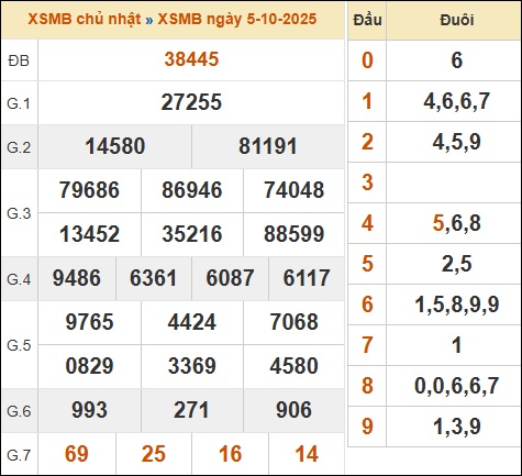 Theo dõi lại kết quả XSMB 05/10/2025 hôm qua