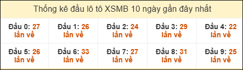 Thống kê tần suất đầu lô tô MB ngày 06/10/2025