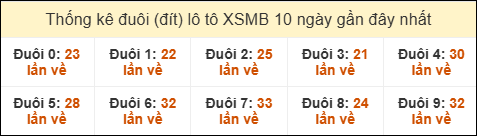 Thống kê tần suất đuôi lô tô Miền Bắc đến ngày 06/10/2025