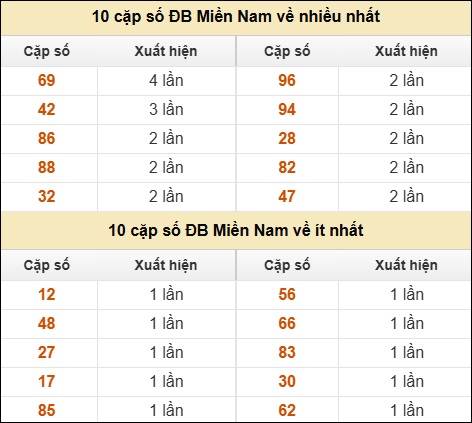 ⚡ 10 cặp số ĐB Miền Nam về nhiều nhất/ ít nhất tính đến ngày 05/09/2025: