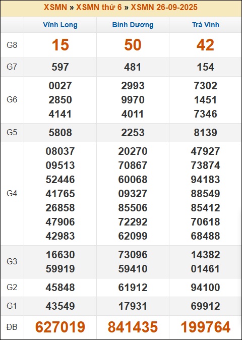 Phân tích XSMN 03/10/2025 - Thống kê xổ số Miền Nam ngày 3 tháng 10 năm 2025 Thứ 6 hôm nay gồm ba đài: Vĩnh Long - Bình Dương - Trà Vinh chi tiết. Nhận định KQXSMN 03/10/2025 miễn phí, hiệu quả nhất từ cao thủ.