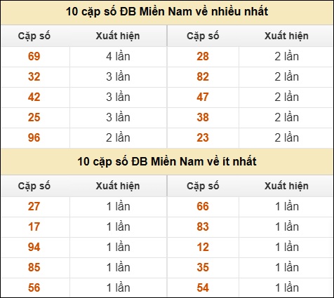 ⚡ 10 cặp số ĐB Miền Nam về nhiều nhất/ ít nhất tính đến ngày 03/10/2025: