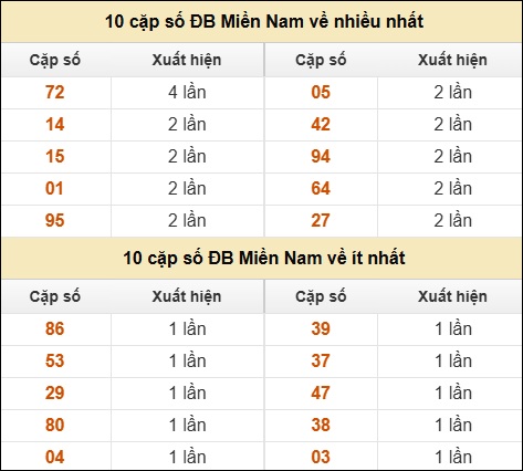 ⚡ 10 cặp số ĐB Miền Nam về nhiều nhất/ ít nhất tính đến ngày 06/10/2025: